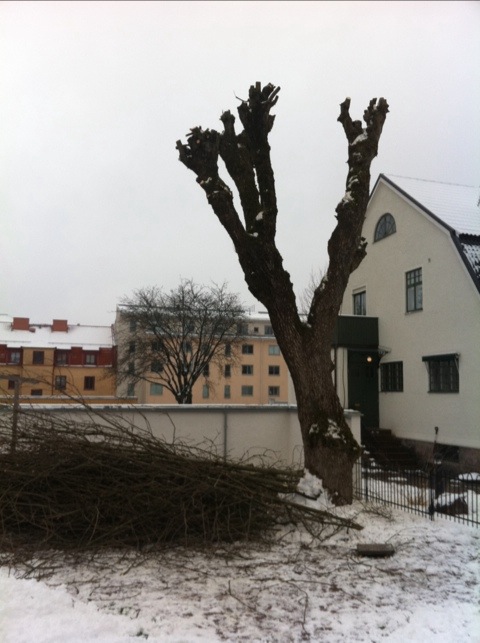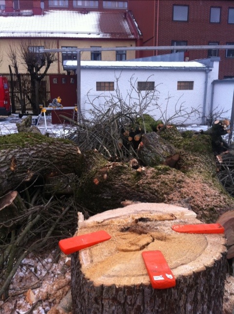 Denna ask är på väg att gå till de sälla jaktmarkerna. Imorgon återstår att fälla stambitar, o det blir nog en utmaning för det är staket o lampor under i stort sett hela trädet. Kul!