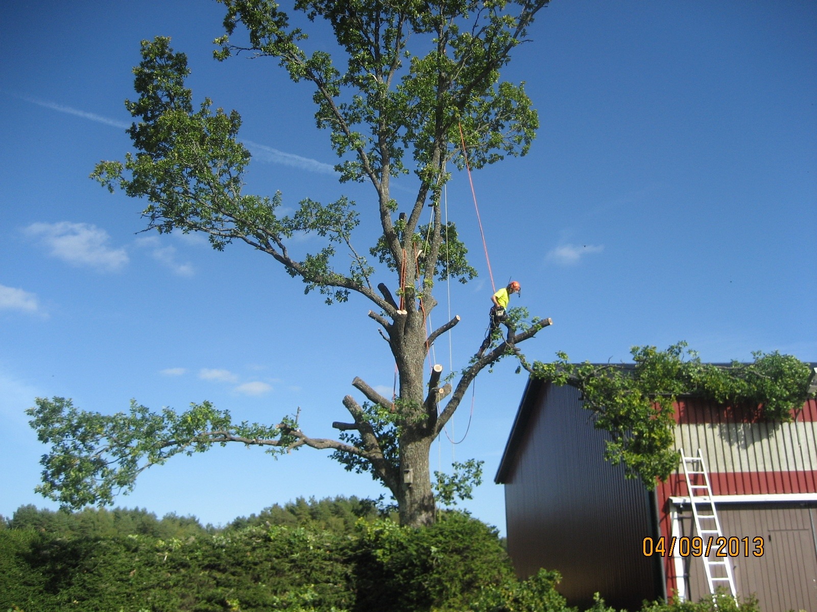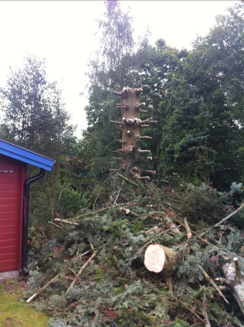 En rejäl ek med ömtålig häck under, och maskinhall jämte. Något av en utmaning men allt gick perfekt.